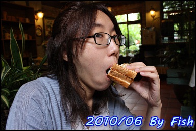 和阿毛毛商量決定點了一客三明治來吃..