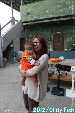 在小碉堡果然看到二個新手媽媽一個人身上背著一個小朋友..